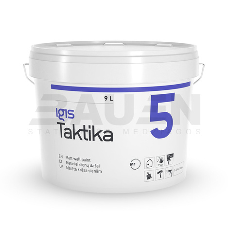 Intensyviai plaunami matiniai dažai IGIS TAKTIKA 5, vidaus darbams, balta (A bazė), 9 L.