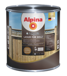 Dažyvė „Alpina Aqua Lasur für Holz” puikai tinka sienų ir lubų dailylentėms, tvoroms, balkonų aptaisams, klijuotos medienos gaminiams ir mediniams namams. Netinka pastovių matmenų mediniams konstrukciniams elementams, tokiems kaip langai, durys. Nepastovių matmenų medinių konstrukcinių elementų drėgmė negali viršyti 18%.